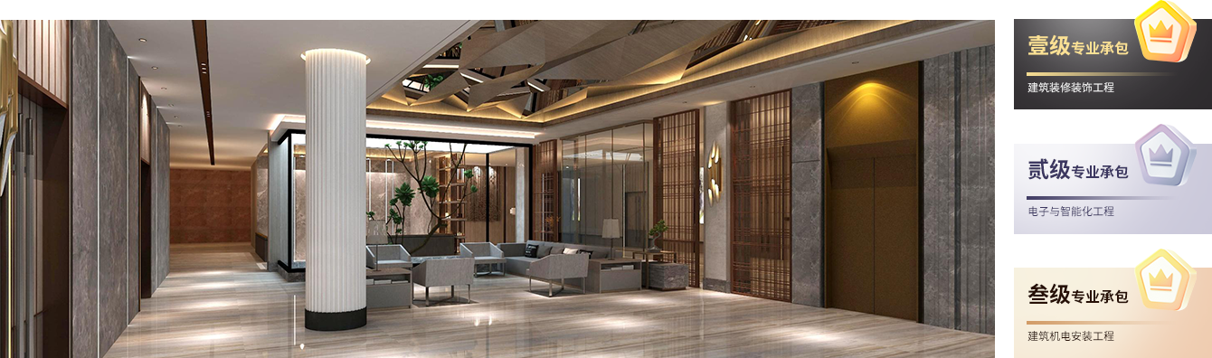 公司專業(yè)承接星級酒店(diàn)、娛樂(yuè)會(huì)所、辦公樓、售樓部、樣闆房(fáng)等大(dà)型建築綜合體(tǐ)的(de)裝飾設計(jì)£與施工(gōng)。